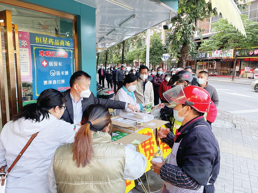 市民排隊免費領藥。 惠州日報記者藍斐菲 通訊員廖苾羽 攝