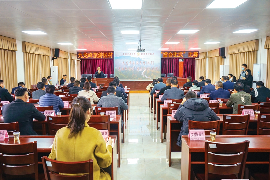 “我們村將依托鄉(xiāng)村振興戰(zhàn)略,積極壯大集體經(jīng)濟(jì),大力發(fā)展艾草種植項(xiàng)目!逼浇妩h支部書記、村委會(huì)主任趙玩超在演講時(shí)介紹道。當(dāng)日下午,九龍峰旅游區(qū)9個(gè)村級黨組織書記走上擂臺(tái)進(jìn)行PK,通過圖文展示、現(xiàn)場匯報(bào)等方式,展示各村在基層黨建、鄉(xiāng)風(fēng)文明、人居環(huán)境整治、基層治理等方面的亮點(diǎn)做法、思路打算。
