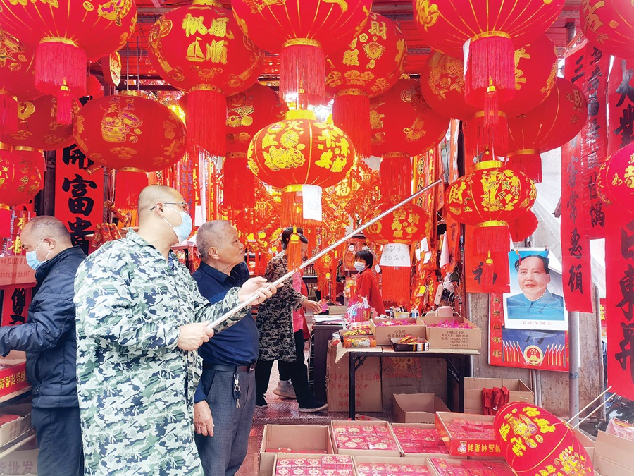 市民選購對聯(lián);葜萑請笥浾咚{(lán)斐菲 攝