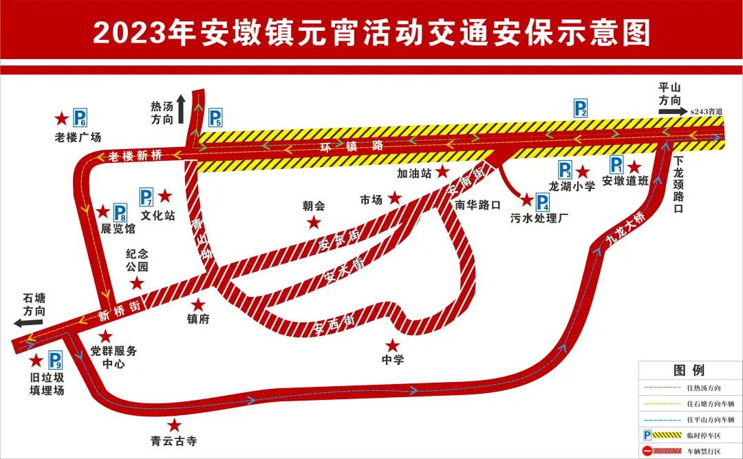 1.途經(jīng)S243線安墩圩鎮(zhèn)前往石塘、藍(lán)塘、紫金的車輛繞行路線:安墩環(huán)鎮(zhèn)路→老樓新橋→村道→安墩橋溫泉村道出口→S243線→石塘、藍(lán)塘、紫金。