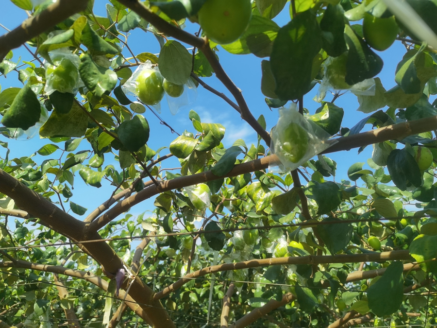 “以往是來年的二月開始摘果,現(xiàn)在一月中旬便能摘果,這得益于光照燈,增加光照時間,讓青棗提前上市,搶抓先機。”藍遠棟一邊向記者講解,一邊指向果樹上放的光照燈。記者了解到,光長村成立了合作社,青棗種植戶之間互相探討種植技術(shù),共享市場信息和銷售渠道!俺斯庹諢,還增加了尼龍布,在霜凍來臨時,用尼龍布將果實蓋起來,起到保溫的效果,從而減少霜凍的傷害。”