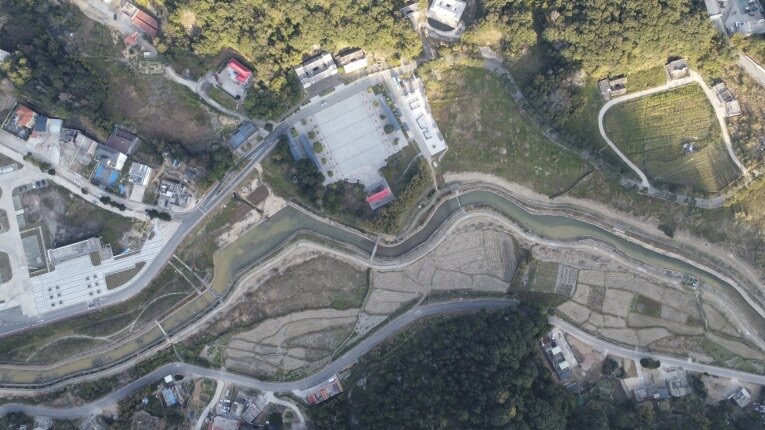 在中洞改編紀(jì)念廣場(chǎng)附近種下油菜花田,等待作物生長(zhǎng)。