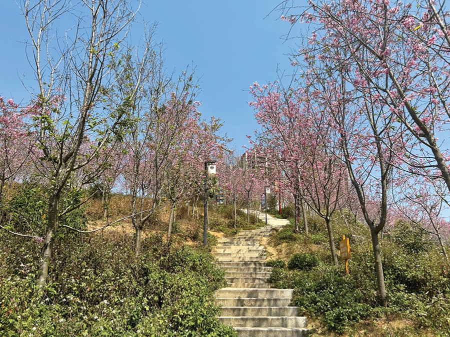 近日,記者在惠東縣寨場山森林公園看到,數(shù)百棵櫻花爭相綻放,一簇簇粉紅掛滿枝頭,有的含苞待放,有的爛漫迎春。一朵朵、一簇簇、一枝枝,隨風舞蹈,輕盈優(yōu)雅,給公園增添了幾分浪漫和詩意。登山游玩、賞花拍照的市民游客絡繹不絕。