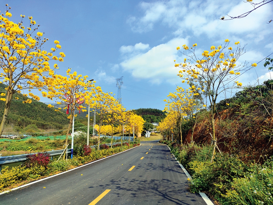 據(jù)介紹,大湖洋村民小組村民主要為畬族。幾年前,碧山村在上級(jí)支持下,開(kāi)始按照打造特色主題村落的規(guī)劃,率先在大湖洋村民小組打造畬族文化主題村落。目前,該村民小組民居統(tǒng)一粉刷,并畫(huà)上民族風(fēng)情墻繪,村里配套建設(shè)小公園及民族風(fēng)情展示區(qū),村道及周?chē)N上黃花風(fēng)鈴木和紫荊花……一個(gè)極具民族風(fēng)情的村落全新展露,吸引了眾多游客前來(lái)打卡。