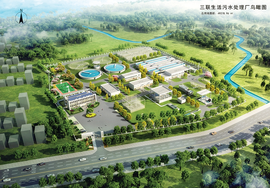 三聯(lián)生活污水處理廠鳥瞰圖。
