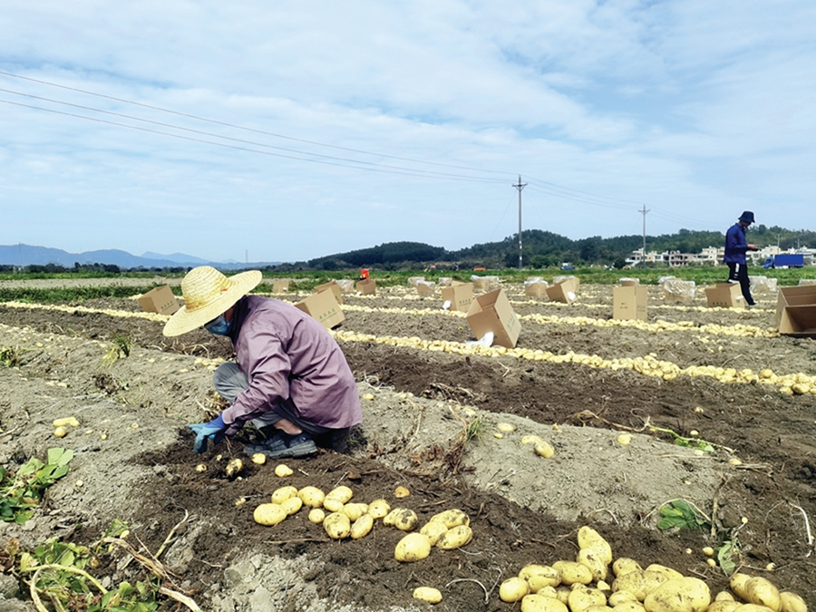 村民在收獲馬鈴薯。