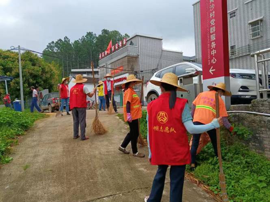 志愿者在清理村道兩旁的雜草;葜萑請(bào)記者蔡偉健 特約通訊員葉衍達(dá) 攝