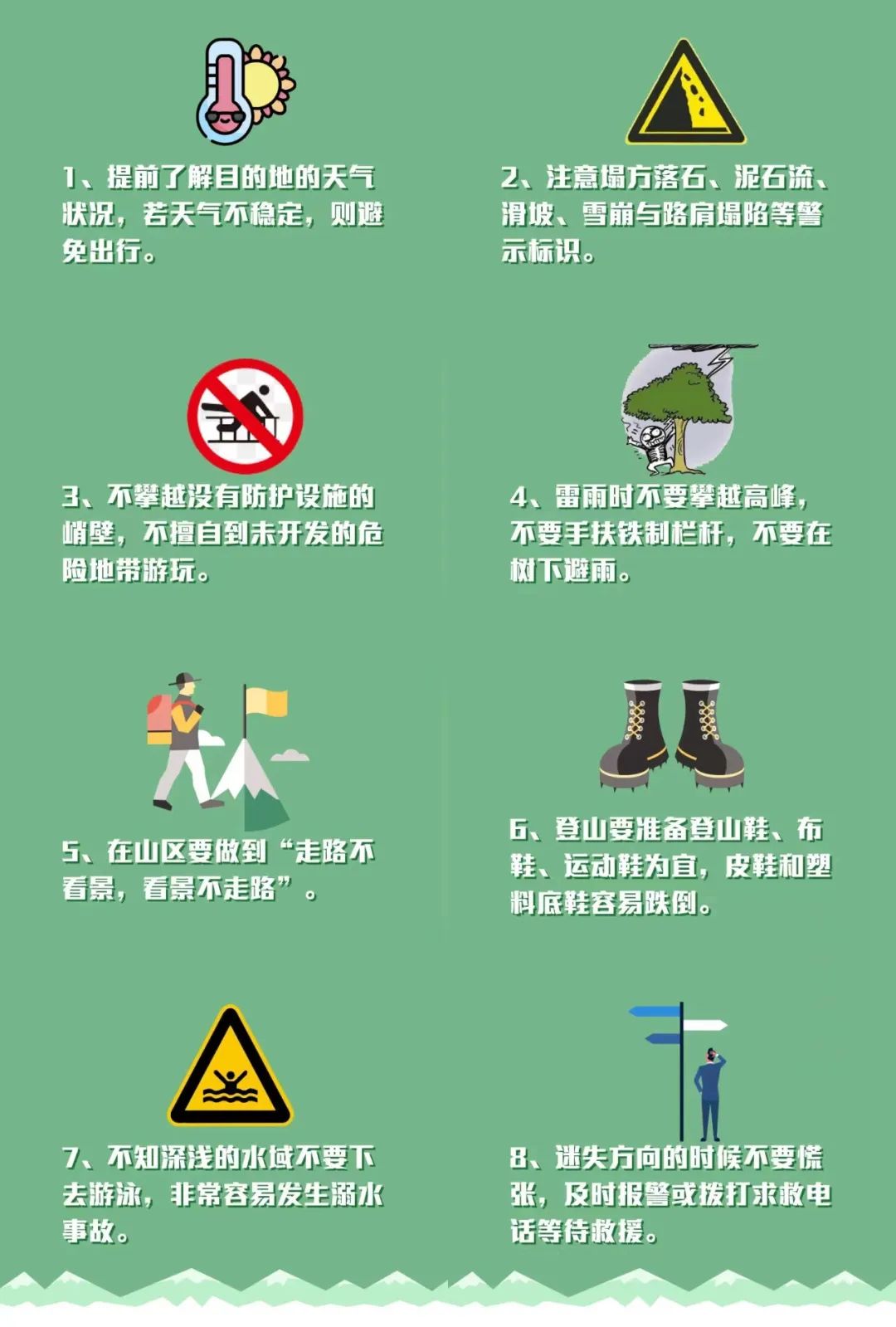 為避免意外發(fā)生,出發(fā)前要制定周密的計(jì)劃,對(duì)要去地方有個(gè)全面的了解,并做好應(yīng)對(duì)突發(fā)情況的準(zhǔn)備,掌握一些急救方法,最好與有豐富經(jīng)驗(yàn)的人通行,切不能盲目從野道登山。