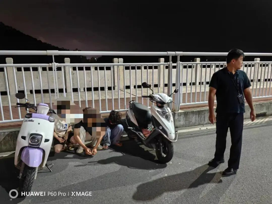 晚上9時許,交警隊員采取便衣出勤,發(fā)現(xiàn)有數(shù)輛非法改裝的摩托車、電動車在蕉田路段、新平大道一帶,多名青少年在路上互相追逐競駛,并伴有“翹頭”、隨意變道等違法行為。這些行為置其他交通出行人安全于不顧,不僅嚴重擾亂了正常道路交通秩序,存在極大的交通安全隱患,警員一直在他們身后緊緊跟隨。