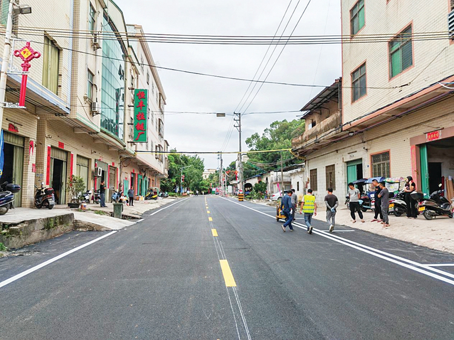 望京洲村村道鋪上瀝青。 惠州日報記者藍斐菲 特約通訊員蔡觀庭 攝