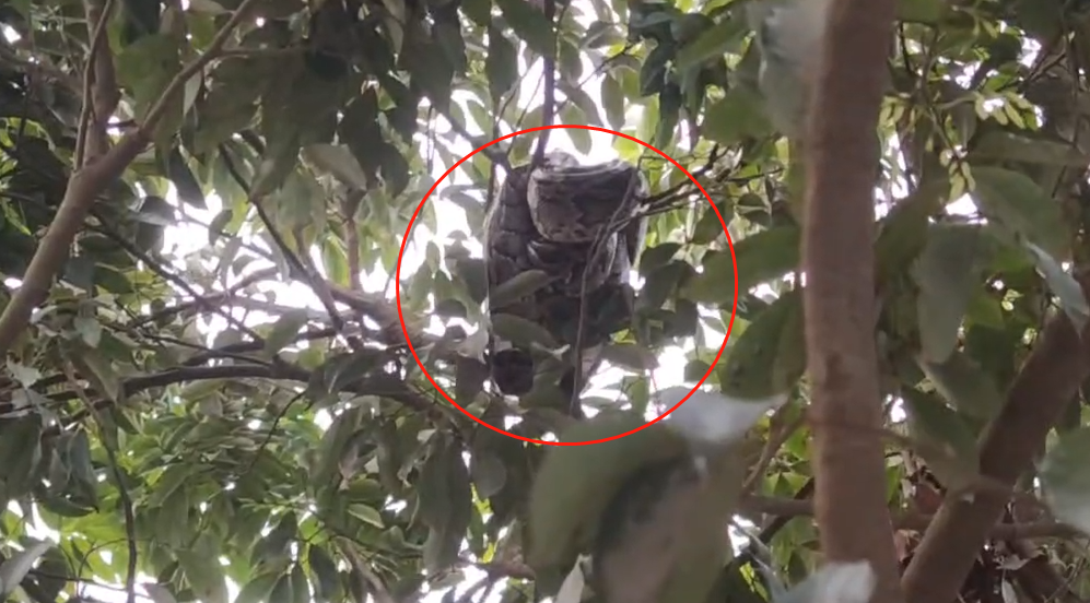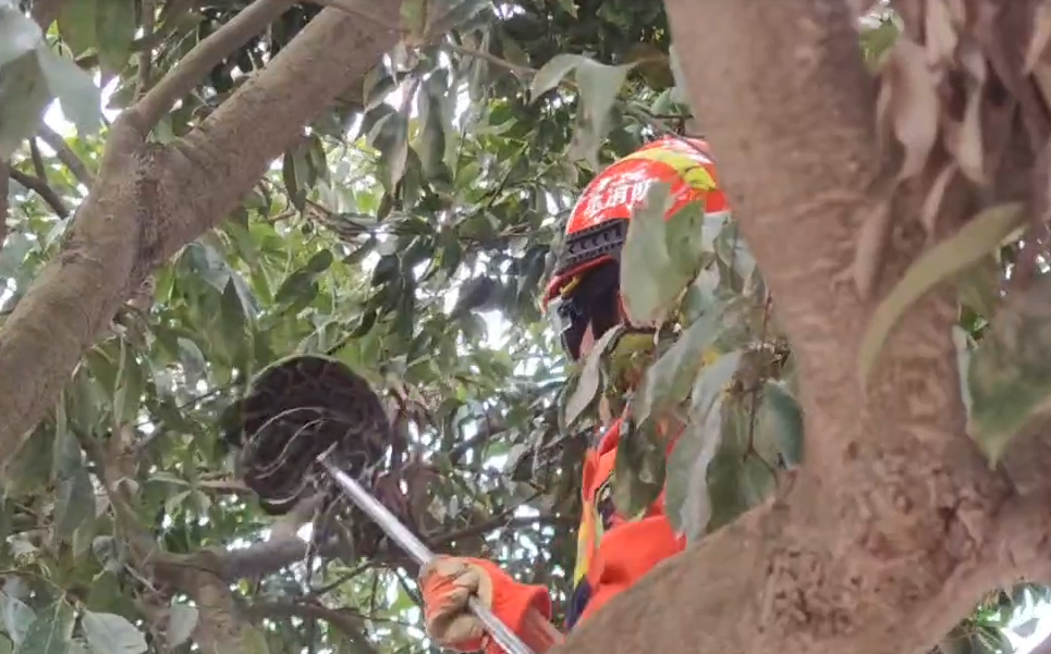 一棵荔枝樹上盤著一條大蟒蛇