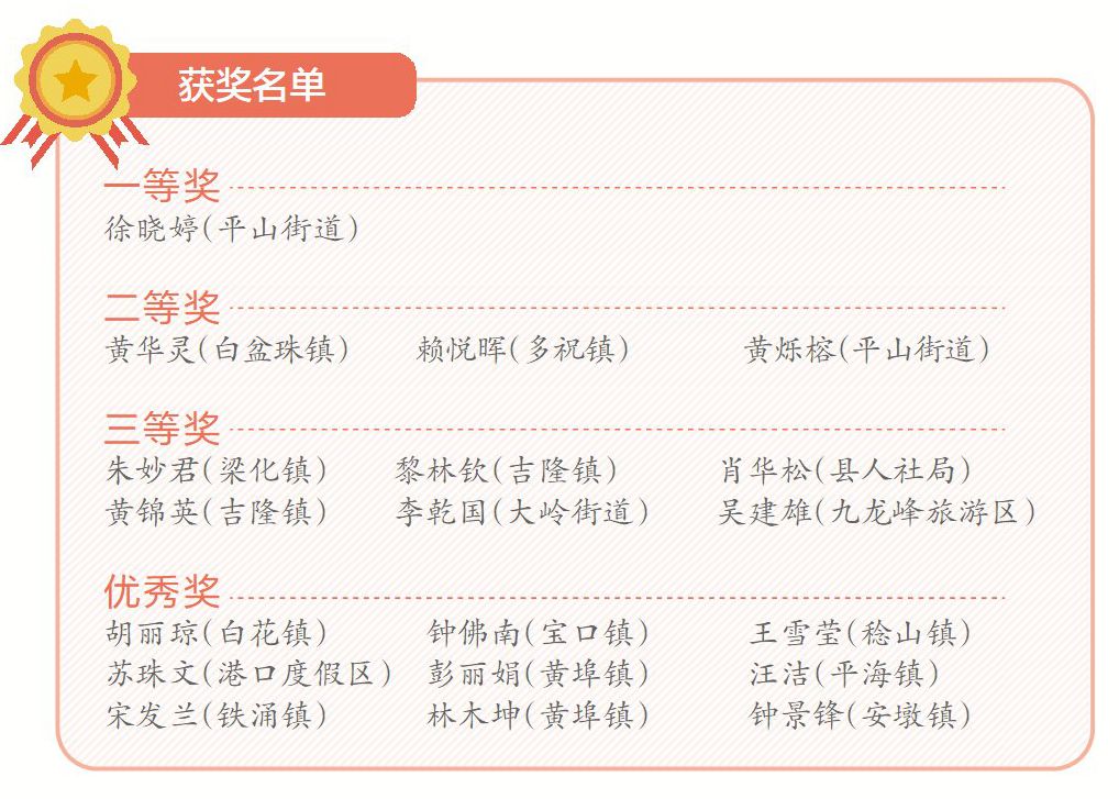 經(jīng)各鎮(zhèn)(街)評選推薦,來自鎮(zhèn)(街)或縣直部門的19名鄉(xiāng)音宣講員緊密結(jié)合鄉(xiāng)村振興、項目建設(shè)、基層治理等重點工作,通過PPT演示、短視頻等方式進行現(xiàn)場演講,宣講內(nèi)容緊扣黨的二十大精神,將黨的理論結(jié)合個人專業(yè)特長或工作經(jīng)歷,用分析案例、綜合分析等方式呈現(xiàn)。專家評委和大眾評委逐一進行打分。經(jīng)過激烈角逐,平山街道徐曉婷獲得一等獎。