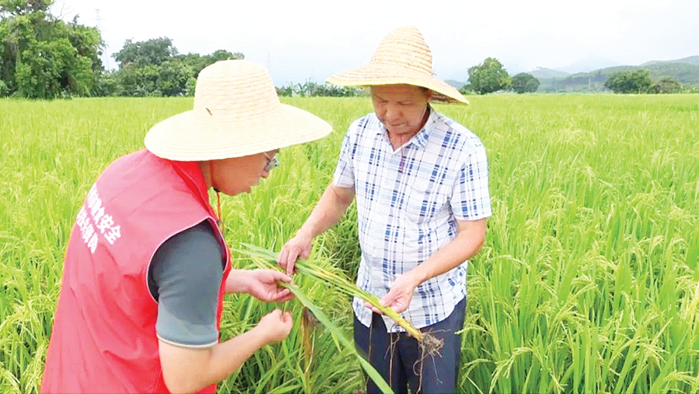 惠州日報訊 (記者藍斐菲 特約通訊員李文聰)當前,農業(yè)生產進入病蟲害高發(fā)期,適逢“龍舟水”集中來襲,給水稻等農作物生長造成較大影響。為保障早稻穩(wěn)產豐收,日前,惠東縣農業(yè)技術推廣中心組織農技先鋒崗技術人員來到田間地頭,為廣大農戶支招。