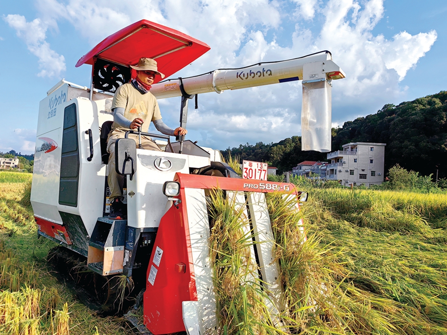 眼下正值早稻豐收季節(jié),惠東縣多地田間地頭滿目金黃、稻香陣陣。伴隨著轟鳴聲,收割機(jī)在稻田里來回穿梭。農(nóng)民忙著收割、貯存,確保稻谷顆粒歸倉。