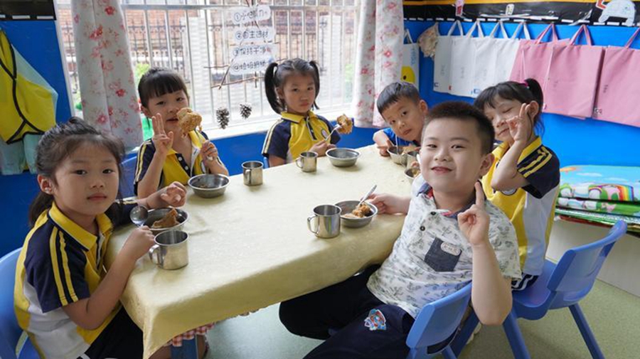 惠東縣直屬機(jī)關(guān)幼兒園學(xué)生正在吃下午茶。