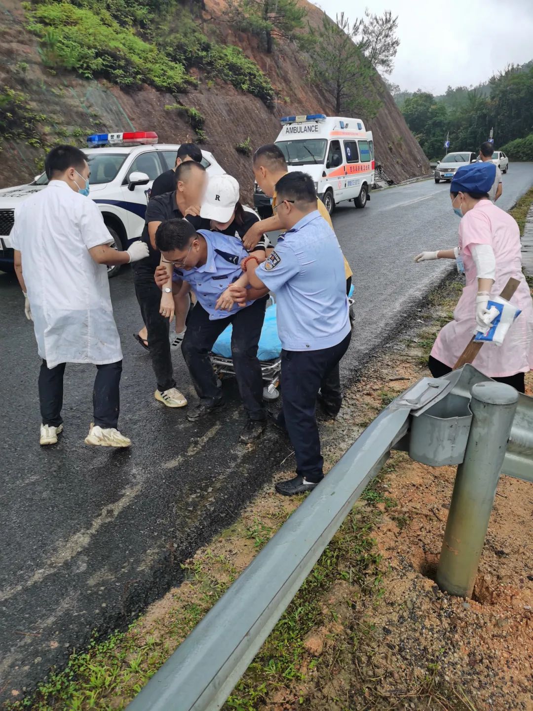 為爭(zhēng)分奪秒地解救被困人員,警員一邊現(xiàn)場(chǎng)秩序,發(fā)動(dòng)事故現(xiàn)場(chǎng)周邊的群眾警民聯(lián)手共同開(kāi)展救援,一邊與到場(chǎng)醫(yī)護(hù)人員小心翼翼地順坡而下,在醫(yī)護(hù)人員查看傷勢(shì)確認(rèn)可以移動(dòng)后,將傷者背上路面。隨后,傷者前往醫(yī)院接受治療,因救援及時(shí)暫無(wú)生命危險(xiǎn),消除安全隱患后,恢復(fù)現(xiàn)場(chǎng)交通秩序。
