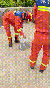 現(xiàn)場消防員做好安全防護后,利用捕蛇工具把蛇扯到地上,將蛇裝入麻袋。最后移交給惠東縣野生救助站作下一步安置。