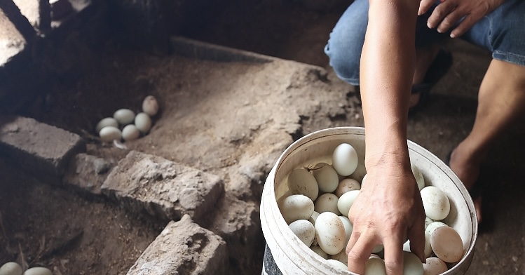 由于生長在海邊,而且吃海鮮長大,所以這里的鴨子被形象地叫作海鴨,產(chǎn)下的蛋則稱為海鴨蛋。海鴨蛋養(yǎng)殖戶林漢江告訴記者,他家兩代人都靠賣海鴨蛋為生。每天早上他就開始撿鴨蛋,每天能撿1000多個(gè)。林漢江表示,吃玉米和海鮮長大的海鴨生出的海鴨蛋金黃透亮,幾乎沒有腥味。他每天預(yù)留出部分新鮮鴨蛋后剩下的都用海鹽和黃泥腌制起來。腌制過后的鴨蛋香味撲鼻,滿口盈香。