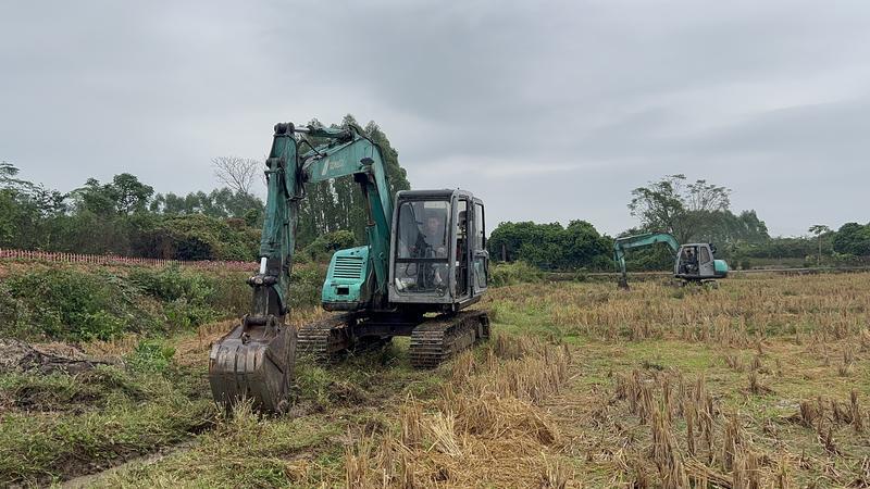 挖掘機(jī)在現(xiàn)場(chǎng)挖通灌渠。 惠州日?qǐng)?bào)記者洪鵲兒 實(shí)習(xí)生曾小幸 攝