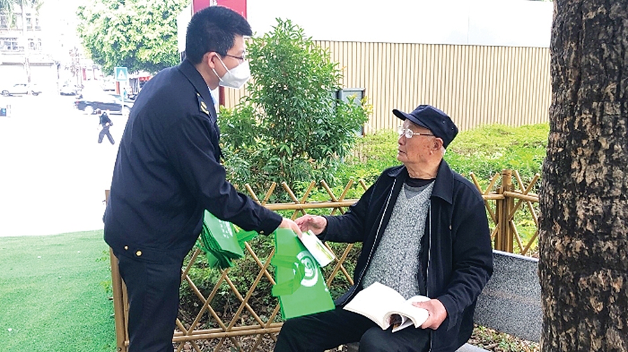 惠東縣市場監(jiān)管局工作人員向群眾派發(fā)相關(guān)宣傳資料。 惠州日?qǐng)?bào)記者蔡偉健 特約通訊員葉衍達(dá) 攝