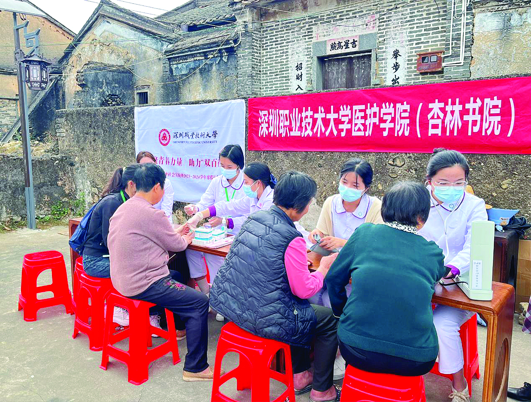 深圳職業(yè)技術(shù)大學(xué)醫(yī)學(xué)技術(shù)與護(hù)理學(xué)院學(xué)生組織義診活動。