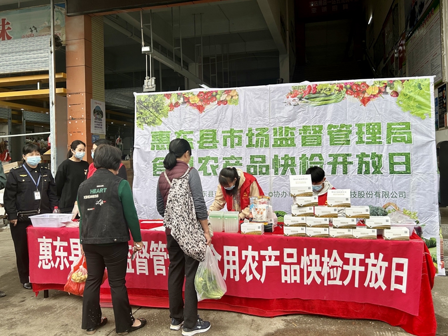 “此次活動,讓消費者近距離了解食品檢驗在保障食品安全方面的重要作用,增強了消費者對農產品質量安全的警覺意識!被輺|縣市場監(jiān)督管理局有關負責人說。接下來,惠東縣市場監(jiān)管局將結合食品安全宣傳活動繼續(xù)開展便民快檢活動,守護群眾食品質量安全。