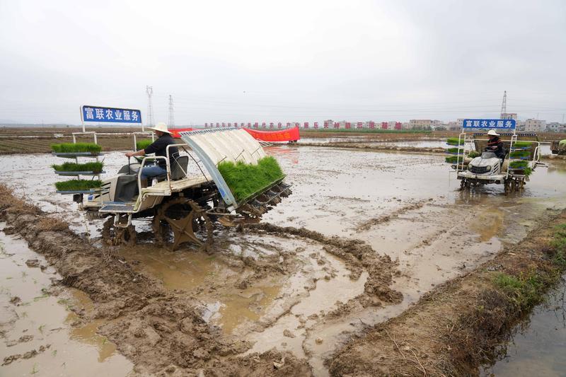 機械插秧節(jié)省人力。