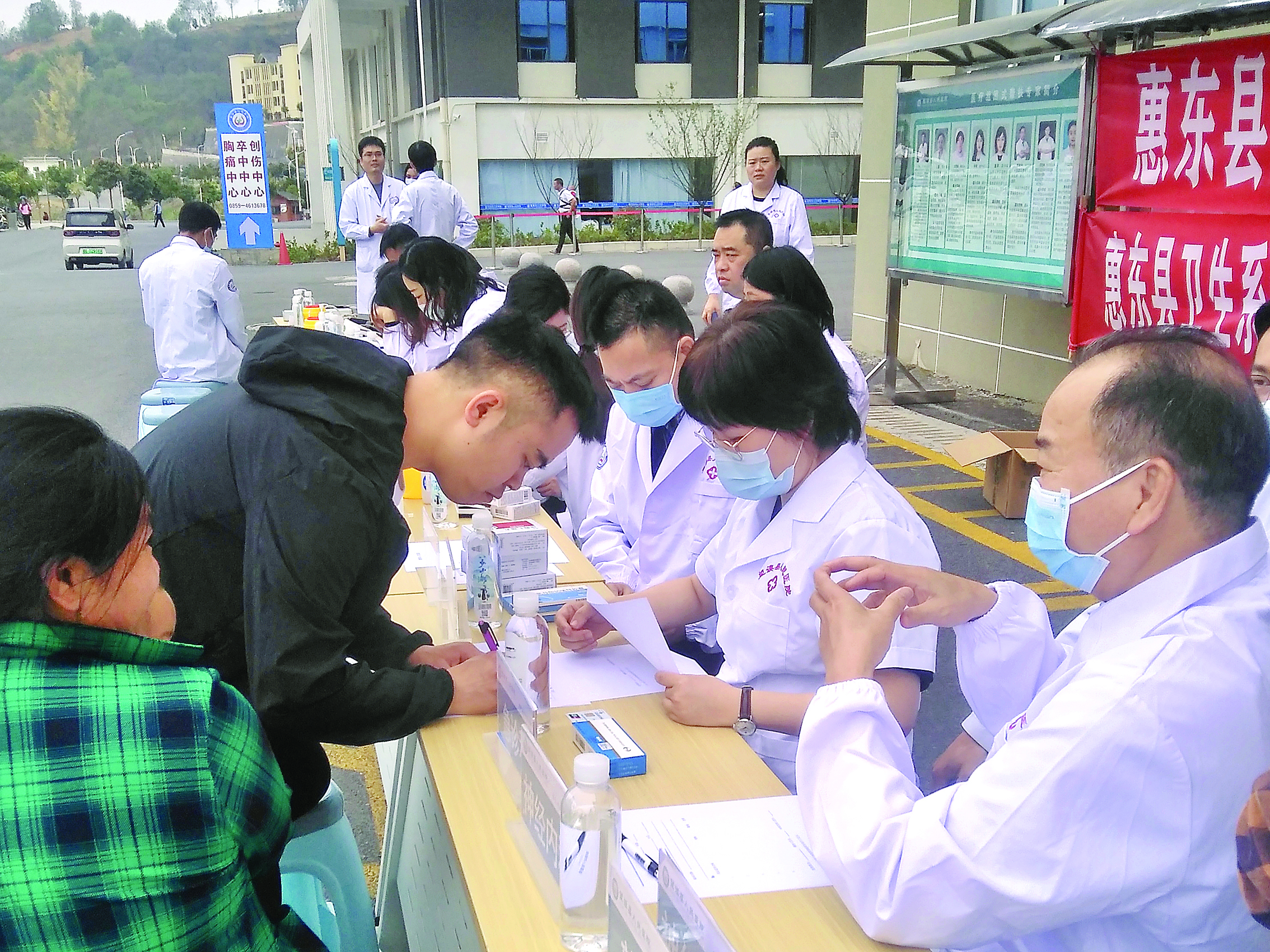惠州日報訊 (記者賴金朗 通訊員劉玉光)4月10日,惠東縣東西部協(xié)作醫(yī)療團隊、貴州省人民醫(yī)院、興義市人民醫(yī)院“組團式”幫扶專家、興義市人民醫(yī)院“萬名醫(yī)師”幫扶專家、望謨縣人民醫(yī)院相關(guān)專家等,聯(lián)合在望謨縣人民醫(yī)院門診樓前開展大型義診活動。
