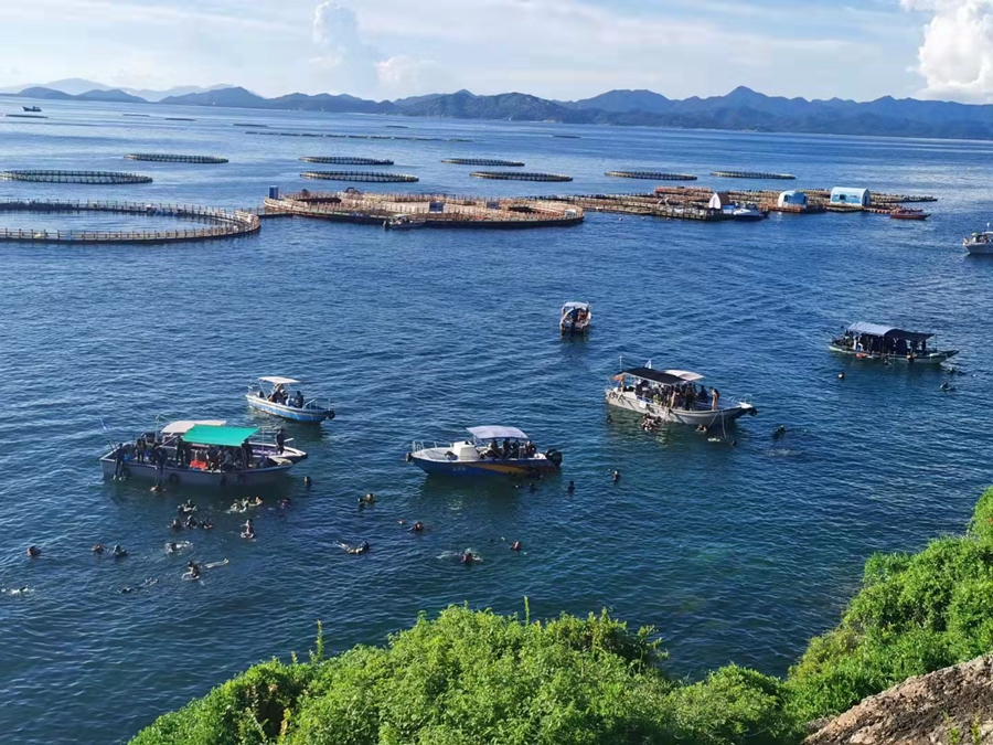 惠東濱海旅游產(chǎn)業(yè)發(fā)展勢頭良好。這是美麗的雙月灣。