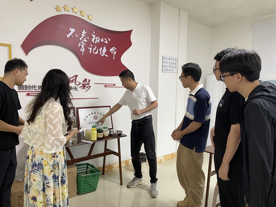 青年養(yǎng)蜂人了解蜂蜜產(chǎn)品。 惠州日報記者洪鵲兒 通訊員朱錦云 攝
