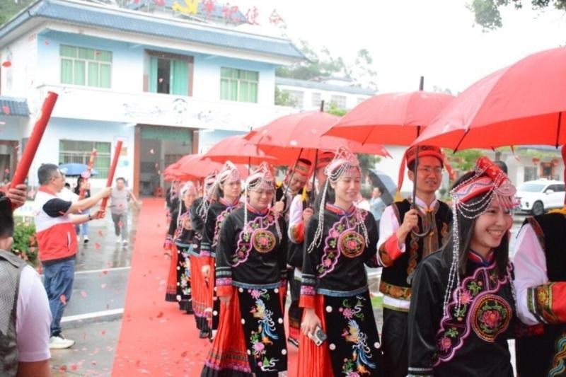 惠州日報訊 (記者蔡偉健 通訊員鐘麗園)5月25日上午,惠東縣平山街道聯合縣民政局、團縣委在該街道碧山村大湖洋村民小組舉行“秀美畬族鄉(xiāng) 情定大湖洋”畬族文化節(jié)暨集體婚禮“為愛種植一棵同心樹”活動。活動吸引了12對新人參加,體驗畬族婚禮的魅力。