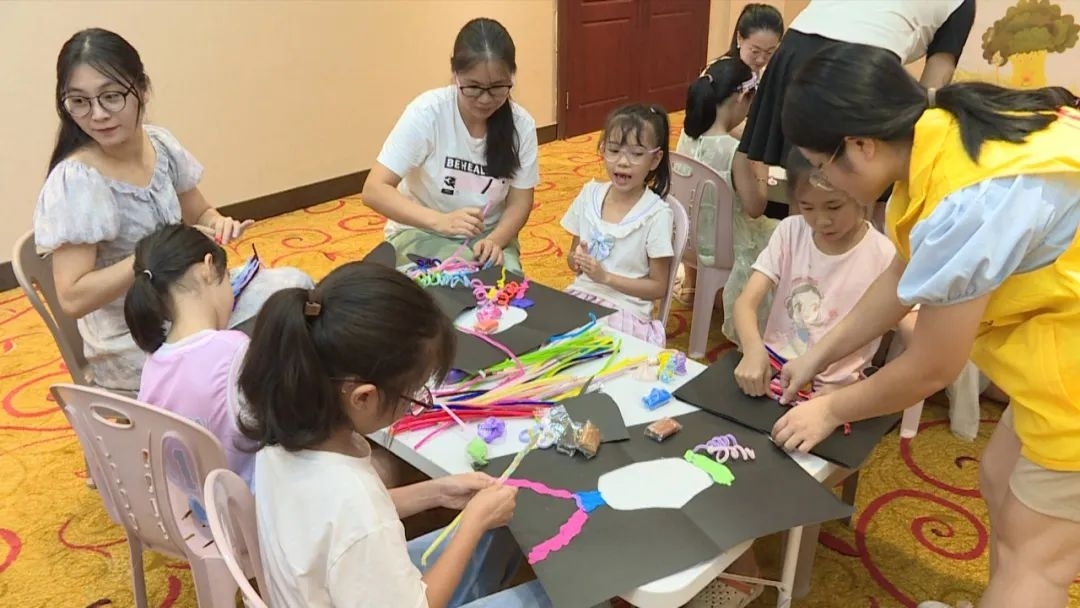 在惠東縣圖書館舉行的“小小書蟲讀書會”閱讀推廣系列活動《西蘭花先生的理發(fā)店》——職業(yè)啟蒙閱讀活動現(xiàn)場,聽志愿者老師講完故事后,小朋友們大膽表達,說出自己的理想和觀點。志愿者還邀請大家發(fā)揮創(chuàng)造力,用卡紙、橡皮泥和彩色扭扭棒制作一個心中理想的發(fā)型?粗粋個新奇的作品,大家都露出了滿意的笑容。