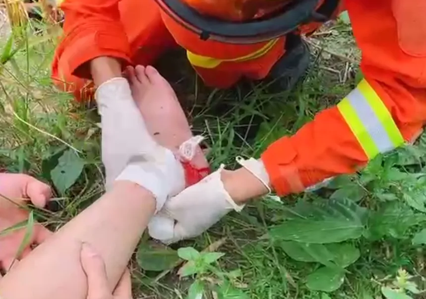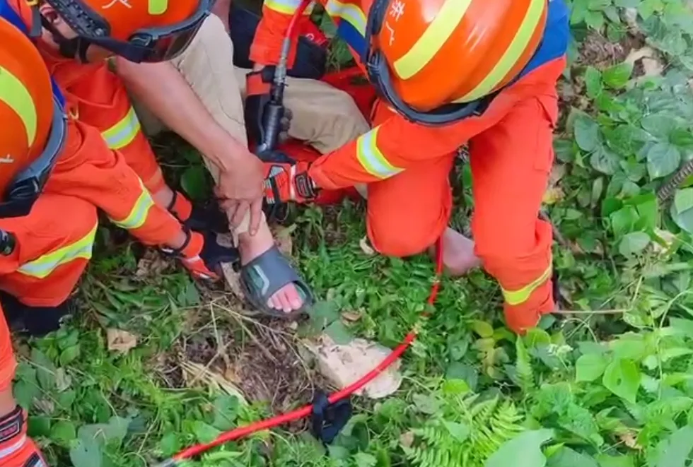 一男子雙腳不慎踩到捕獸夾無法動彈
