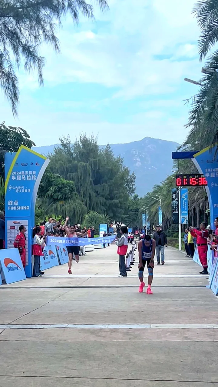 朱卿以1小時(shí)15分41秒獲得女子半馬第一名。