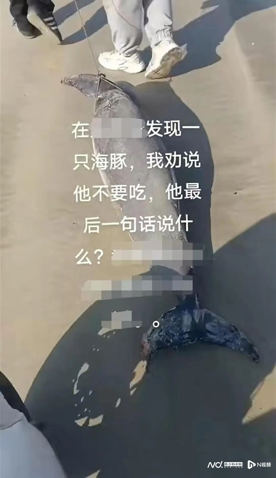 12月20日清晨,在惠東雙月灣海域的沙灘,來自重慶的旅游團人員發(fā)現(xiàn)一只擱淺的海豚,并因好奇意圖拖走。平海派出所接警后,立即聯(lián)合當(dāng)?shù)貪O政大隊介入處理,并將已經(jīng)死亡的海豚做無公害處理。記者觀察,該事件相關(guān)視頻在網(wǎng)上流傳,現(xiàn)場一名穿深色衣服的男子和一名穿紅色上衣的男子,正用力將海豚拖走。有目擊者稱,對方要帶走海豚食用,其上前勸阻,對方還反問他“為啥不能吃,要拿回去燉掉!