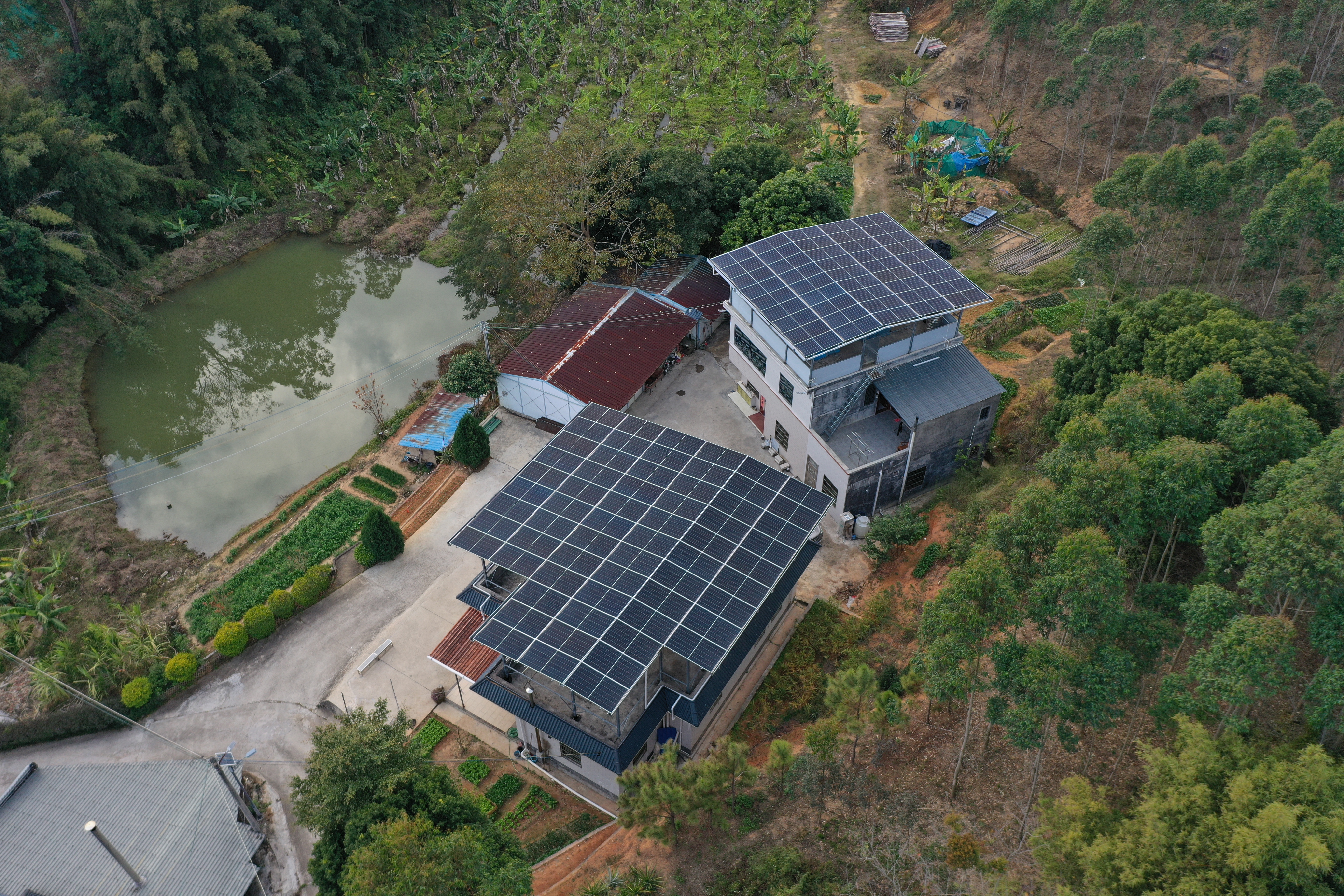村民房頂裝上太陽能光伏板。