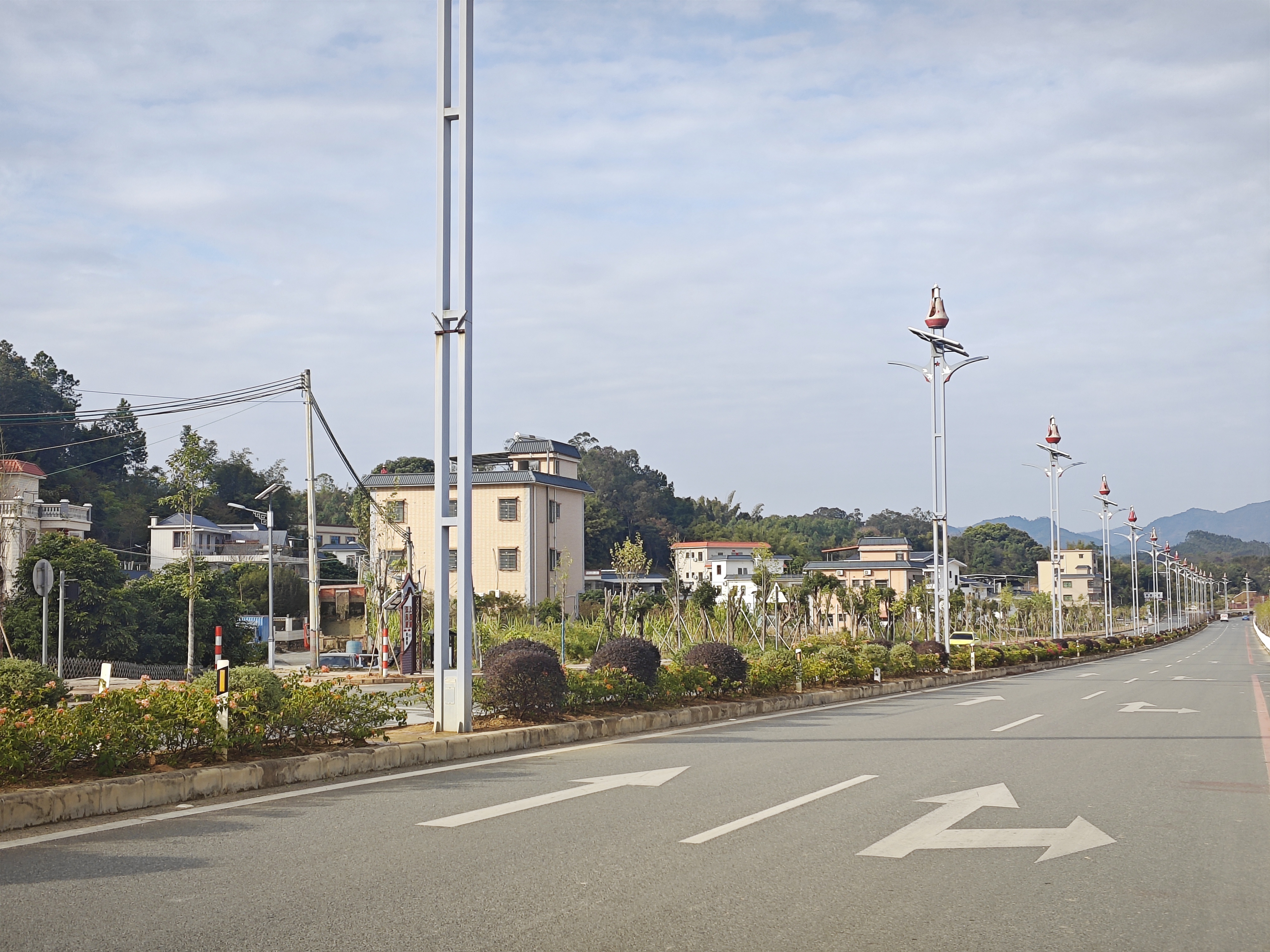 除了太陽能光伏板,走在新聯(lián)村村道上,隨處可見環(huán)保路燈!按謇锇惭b的都是風(fēng)光能環(huán)保燈,整排路燈沒有一根電線,均靠風(fēng)力發(fā)電和太陽能蓄電池來提供能源。不僅滿足了村民夜間出行需求,也為村里用電節(jié)省了不少開支!毙侣(lián)村黨支部書記羅玉平說。