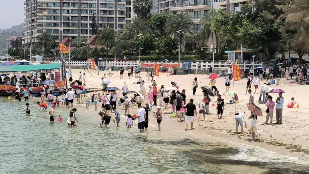 截至5月2日21:00時(shí),巽寮總車(chē)流量72124車(chē)次, 總?cè)肆髁考s21.7萬(wàn)人次。截至5月2日20:00時(shí),巽寮轄區(qū)各類酒店入住房間數(shù)約30000間,接待過(guò)夜游客約58000人,熱力值滿滿,游客體驗(yàn)感“拉滿”。