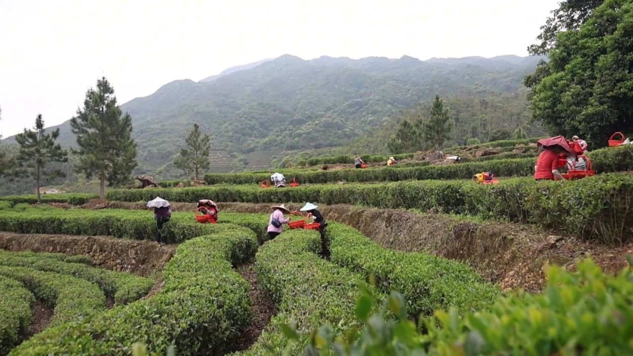 橫坑村茶園內(nèi),工人采茶忙;葜萑?qǐng)?bào)記者蔡偉健 通訊員葉琳 攝