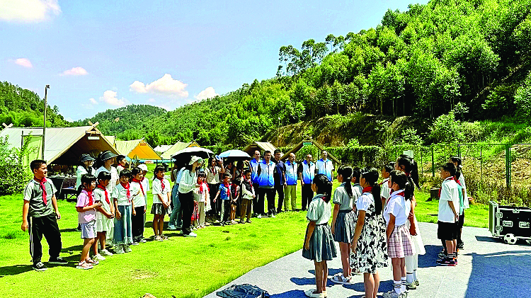 惠州日?qǐng)?bào)訊 (記者蔡偉健 特約通訊員朱慶雄)日前,駐白盆珠鎮(zhèn)幫鎮(zhèn)扶村工作隊(duì)與白盆珠鎮(zhèn)白馬小學(xué)40余名師生走進(jìn)棲野綠石河谷營(yíng)地,開(kāi)展綠色撿跑、鵝卵石手作、才藝展示等研學(xué)活動(dòng),將生態(tài)教育融入鄉(xiāng)村實(shí)踐,為綠美廣東生態(tài)建設(shè)注入少年力量。