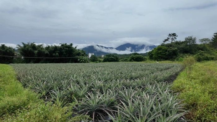 記者走進(jìn)鳳梨基地,只見200畝鳳梨植株整齊排列,繁茂的綠葉間,一個(gè)個(gè)飽滿的鳳梨若隱若現(xiàn),空氣中彌漫著淡淡的果香。基地負(fù)責(zé)人鐘振彬說,鳳梨生長(zhǎng)周期較長(zhǎng),通常一年半收獲一回,三年能收兩回,平均一畝地產(chǎn)量7000斤左右,約2300~2500顆。不同品種的鳳梨各具特色,口感和甜度也有所不同,“果園種植的有四個(gè)品種,分別是西瓜鳳梨、芒果鳳梨、冬蜜和金鉆。這些鳳梨質(zhì)量可靠,口感一流,美味可口”。