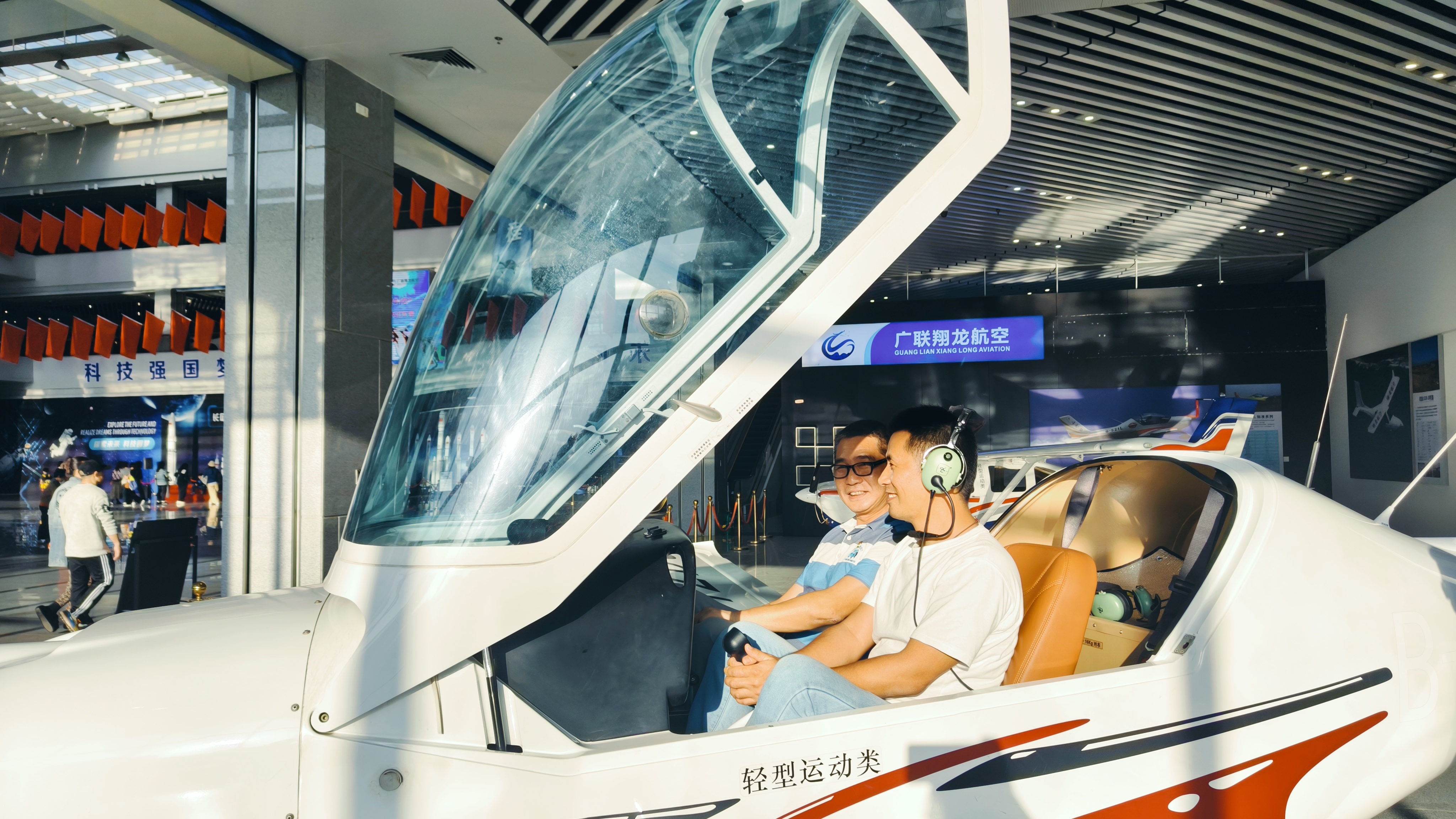 參與活動的黨員們體驗模擬飛行。 惠州日報記者洪鵲兒 通訊員李衡 攝