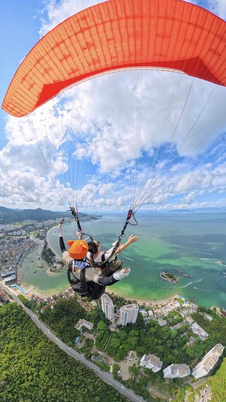 游客在巽寮灣體驗滑翔傘,感受“空中漫步”的樂趣;葜菔虚L弘戶外運動有限公司供圖