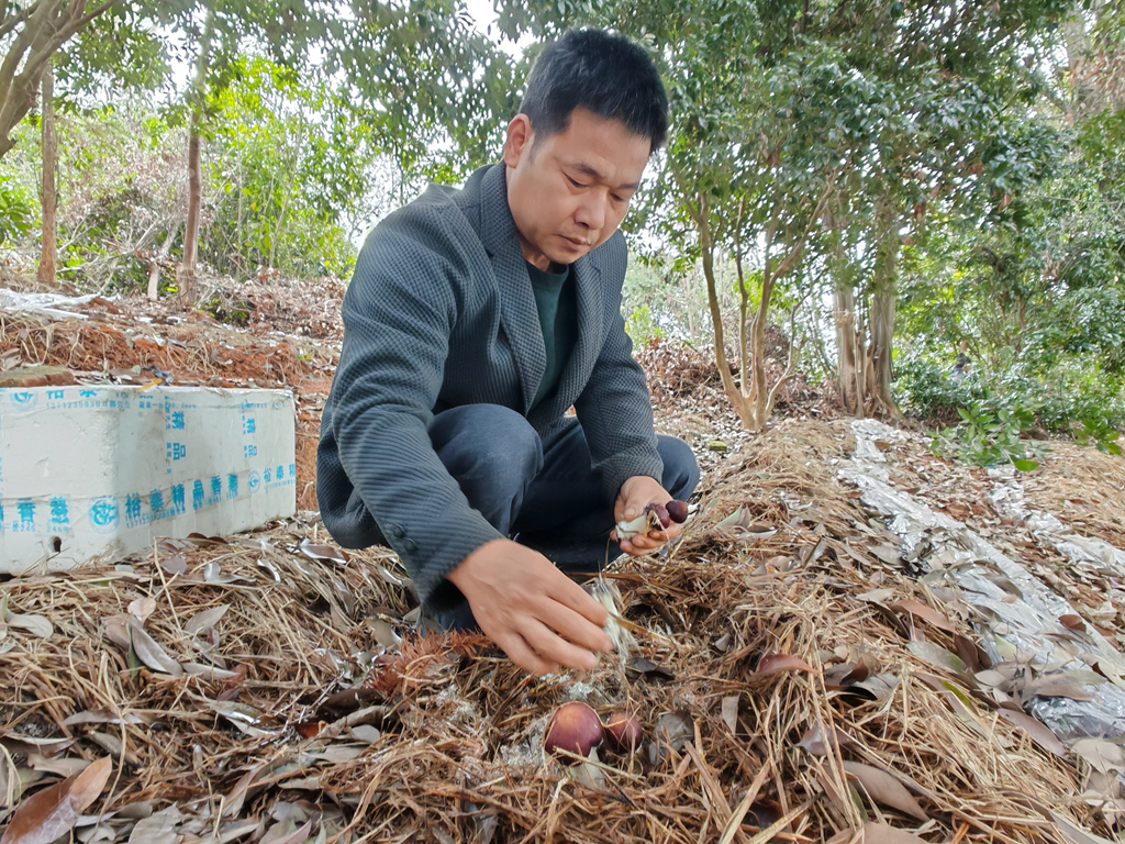 更讓農(nóng)戶驚喜的是,紅松茸種植還能改良土壤。種植紅松茸的培養(yǎng)基都是天然有機(jī)肥,采收結(jié)束后翻入地里,能增加土壤肥力,來年種番薯、稻谷,有助于提高產(chǎn)量。