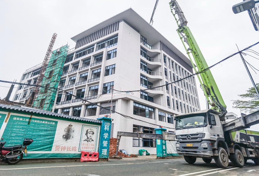 與三和街道毗鄰的沙田鎮(zhèn)中心衛(wèi)生院改擴(kuò)建項目現(xiàn)場,工人正在忙碌施工,機(jī)器有序作業(yè)。該院成立于1957年,院內(nèi)設(shè)施設(shè)備老舊。2018年,沙田鎮(zhèn)中心衛(wèi)生院改擴(kuò)建項目啟動建設(shè)并于2020年納入當(dāng)年的惠陽區(qū)民生實事項目和區(qū)衛(wèi)生健康事項重點項目。項目占地1128平方米,總建筑面積8348.84平方米,地下一層地上六層。目前,該院主體建筑已封頂,完成工程量86%。