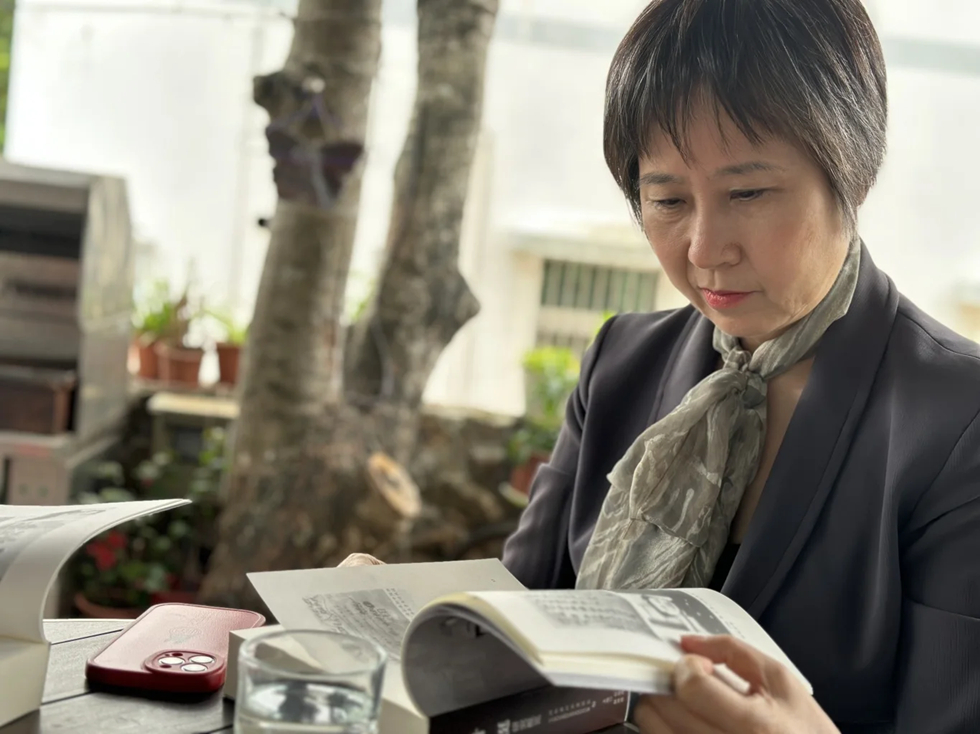 葉小燕閱讀關(guān)于爺爺葉挺將軍的書籍。