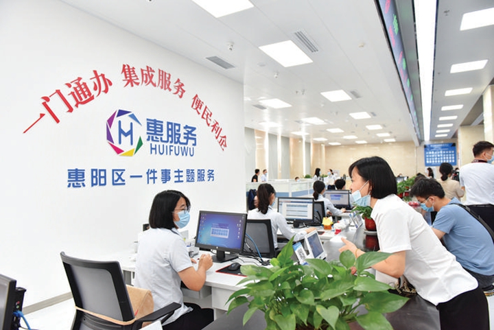 企業(yè)工作人員在惠陽(yáng)區(qū)政務(wù)服務(wù)大廳咨詢業(yè)務(wù)。 惠州日?qǐng)?bào)記者許文昌 通訊員文學(xué)群 攝