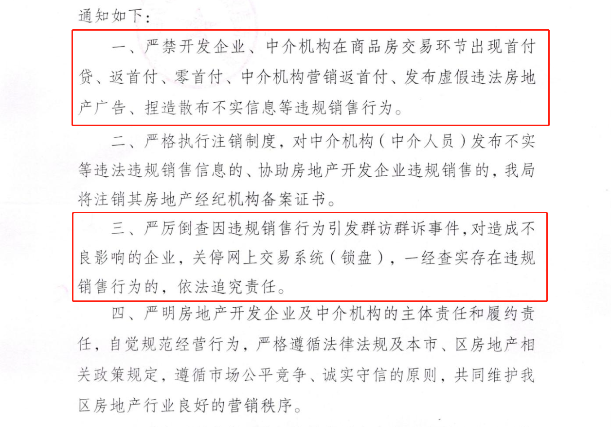 同時(shí),該局還將嚴(yán)厲倒查因違規(guī)銷售行為引發(fā)群訪群訴事件,對(duì)造成不良影響的企業(yè),關(guān)停網(wǎng)上交易系統(tǒng) (鎖盤 ),一經(jīng)查實(shí)存在違規(guī)銷售行為的,依法追究責(zé)任。
