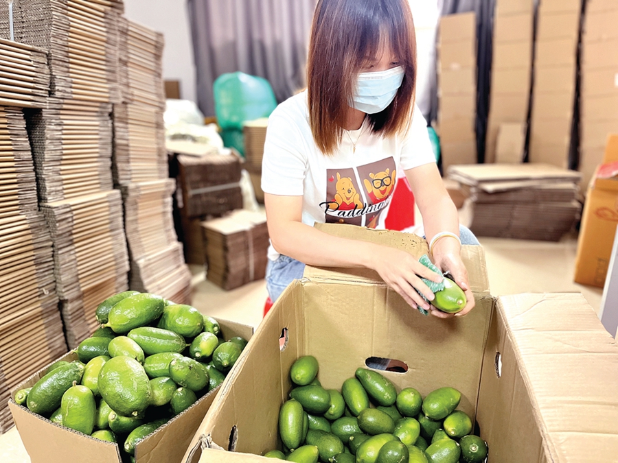 “粵良井”電商團(tuán)隊(duì)在打包香水檸檬準(zhǔn)備發(fā)貨。