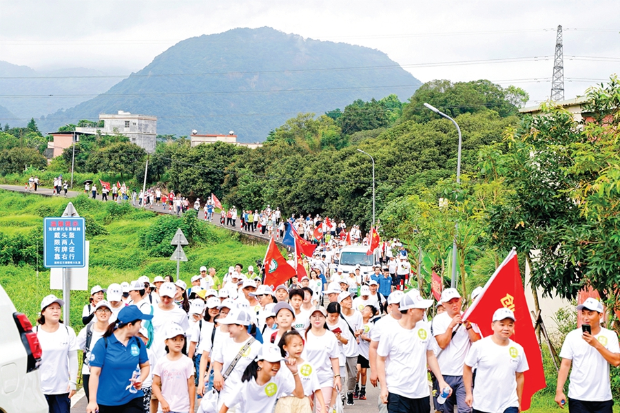 早上8時(shí)30分,在鎮(zhèn)隆鎮(zhèn)山頂村,隨著一聲令下,浩浩蕩蕩的隊(duì)伍從起點(diǎn)出發(fā)。徒步路線經(jīng)過三坑、高面、河唇、內(nèi)環(huán)路、曲坑、三坑環(huán)后回到起點(diǎn),每公里設(shè)一個(gè)休息區(qū)和補(bǔ)給醫(yī)療站;顒(dòng)還安排了黨的二十大知識(shí)問答,以及點(diǎn)球大賽、給“荔”大作戰(zhàn)、垃圾分類、“反詐秘方”砸洞游戲、荔枝保齡球等趣味游戲。徒步者到達(dá)站點(diǎn)玩游戲可獲得印章,集滿5個(gè)印章還能參加抽獎(jiǎng)。